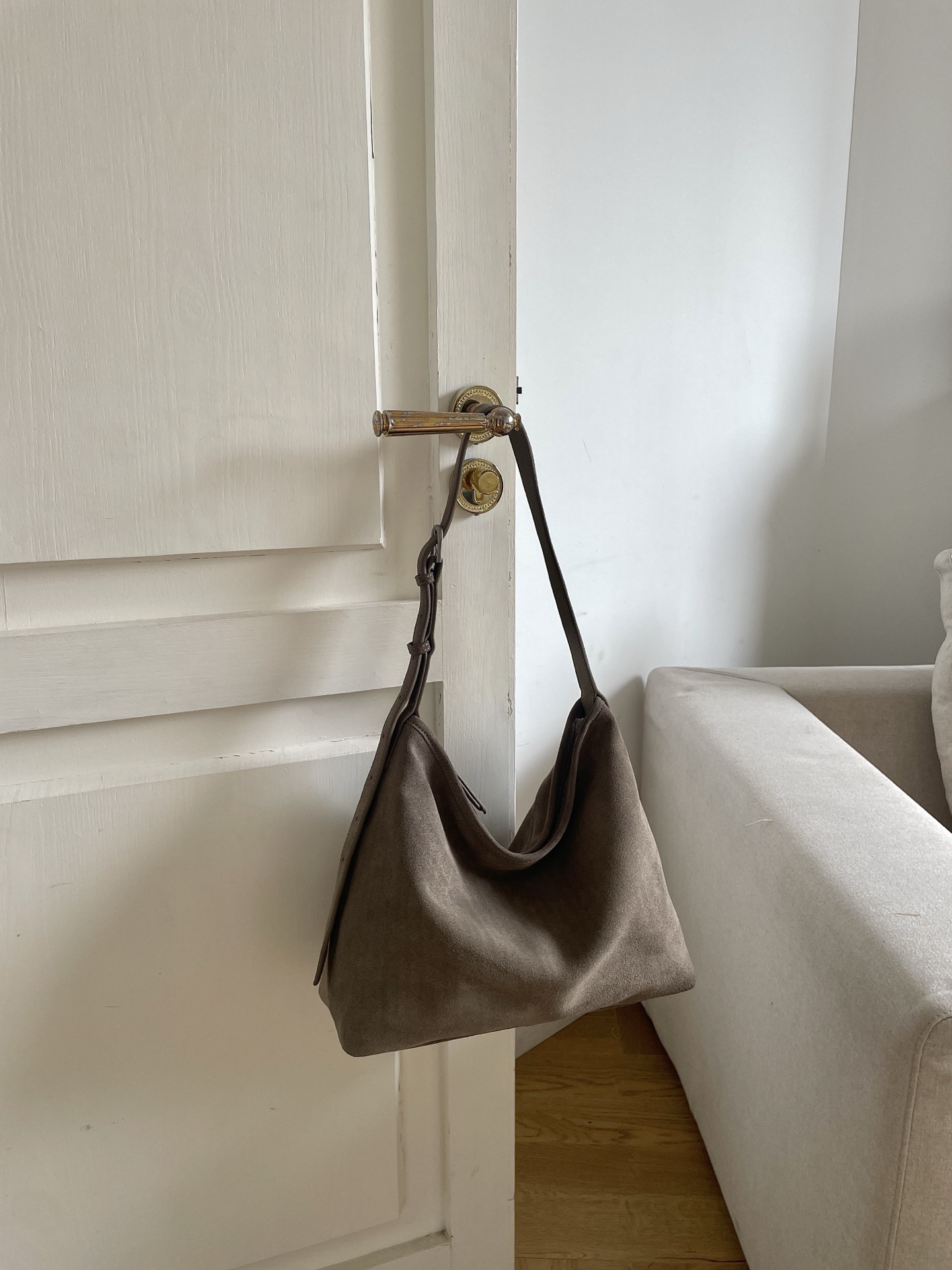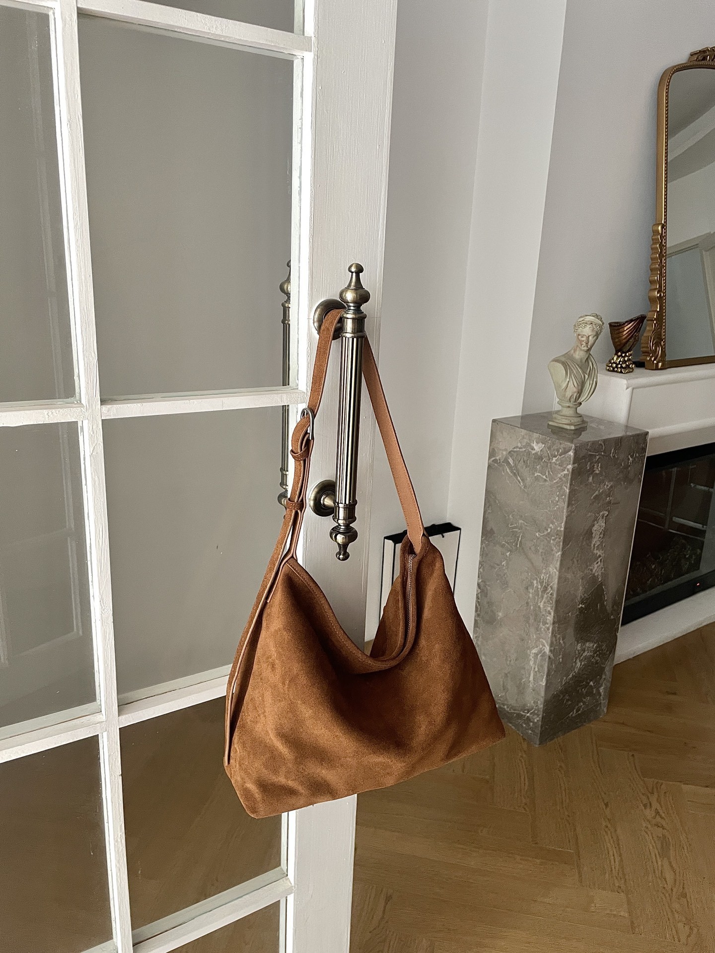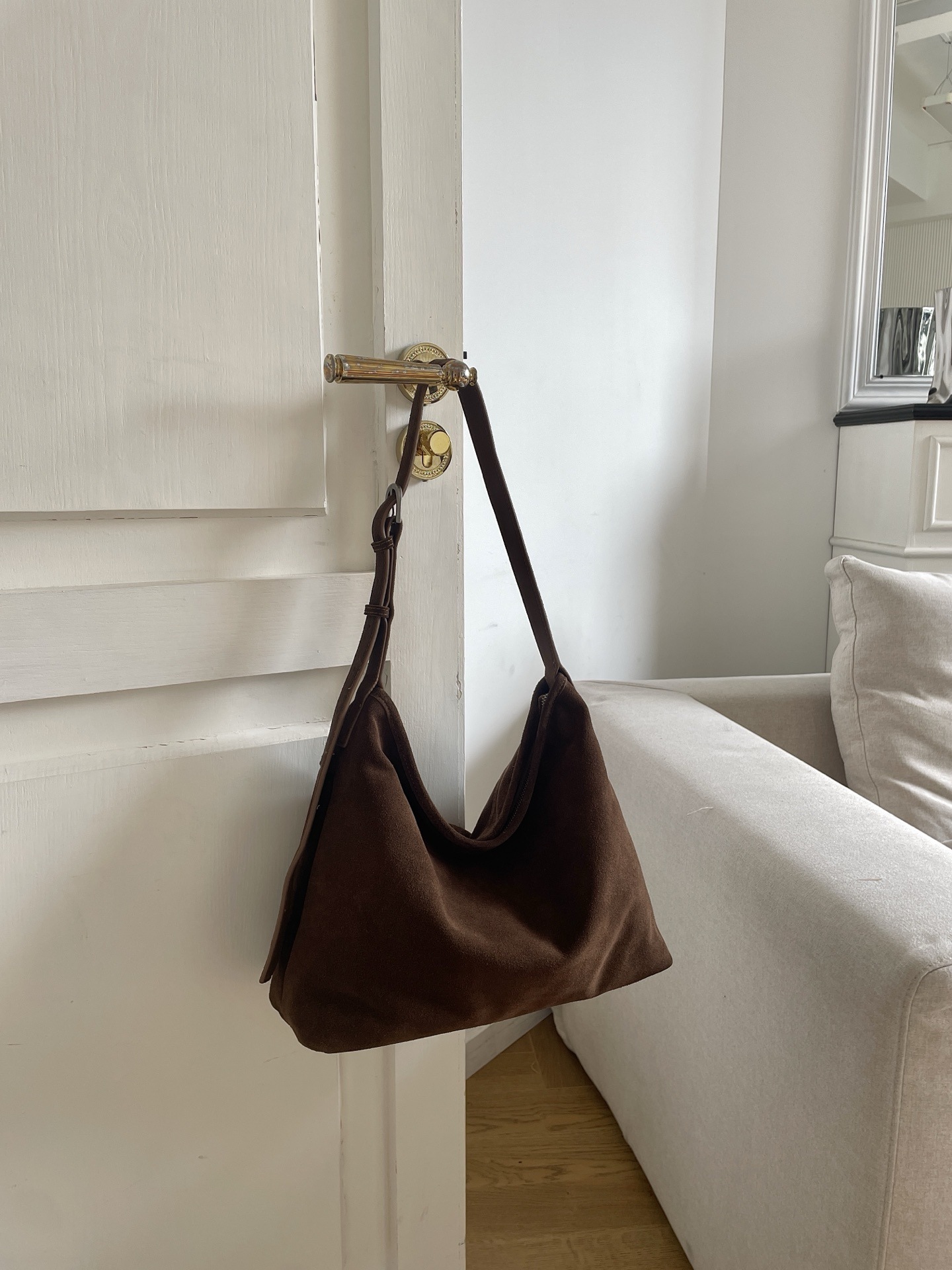 Замша. На замке. Внутри два кармана.