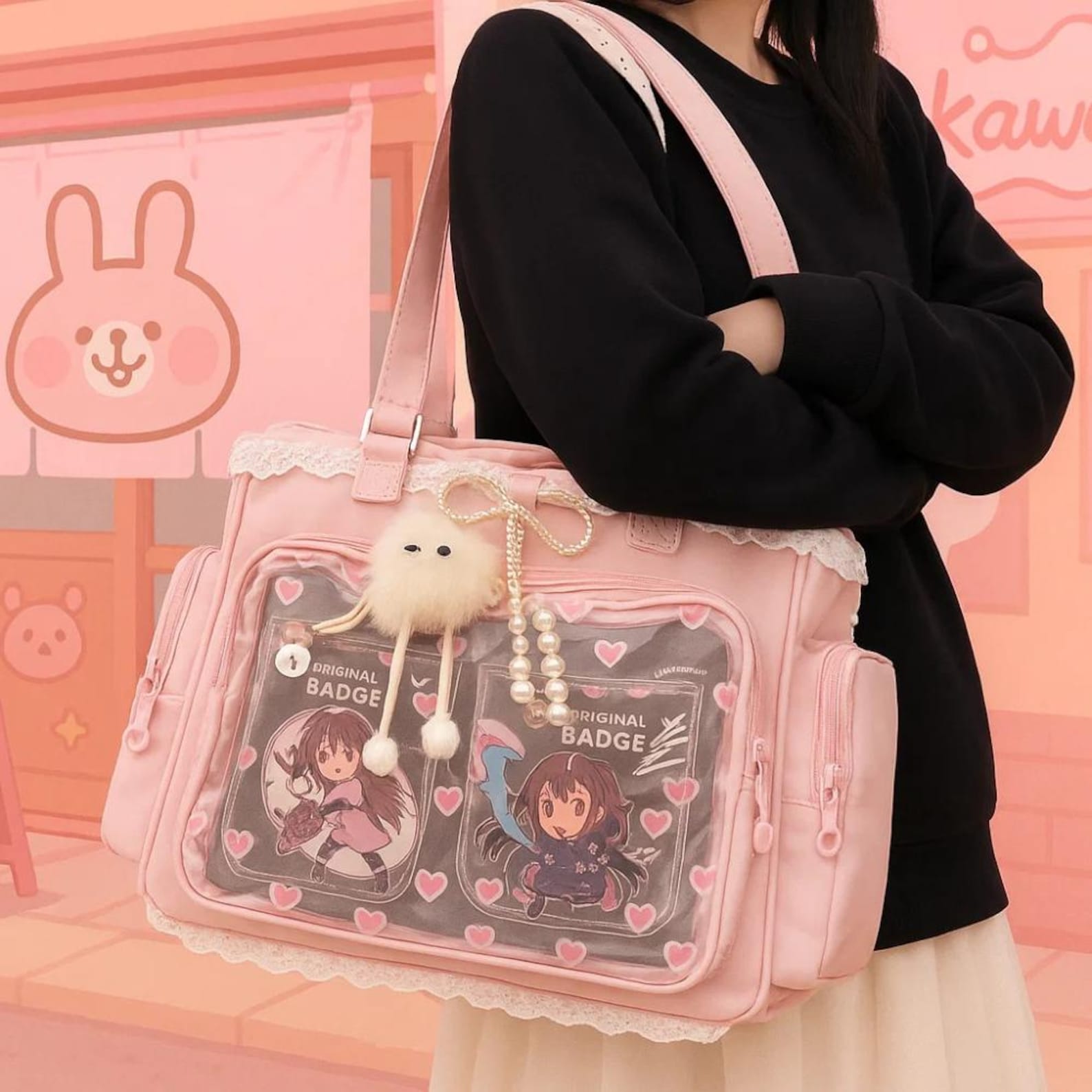 Decorate your bag with pins, charms, plushies, or anime badges.