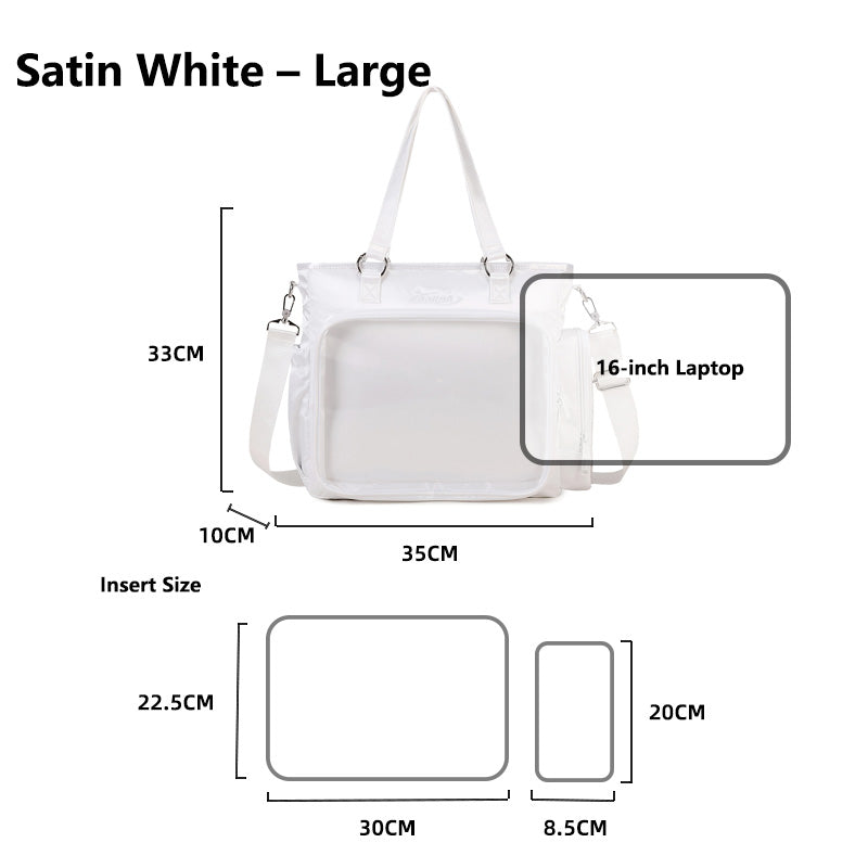Made with a new eco-friendly TPU transparent layer that is highly clear, scratch-resistant, and odor-free. The water-resistant fabric keeps your belongings safe and fits up to a 16-inch Apple laptop.