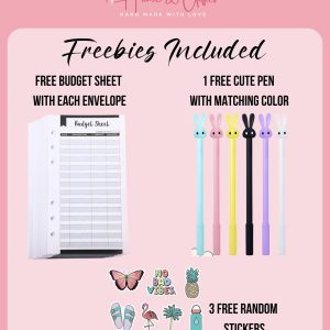-Freebies: 3 random free stickers, 1 cute pen, and a budget sheet for each cash envelope.