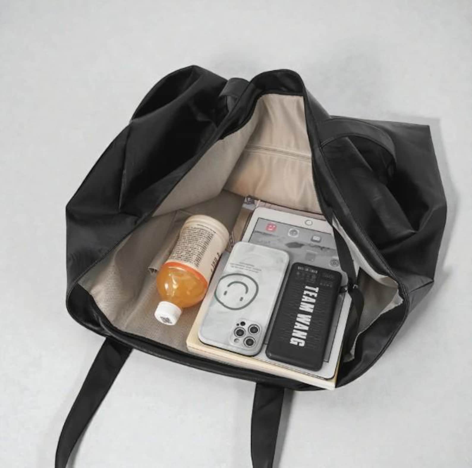This oversized and stylish tote bag offers a perfect blend of minimalist fashion and maximum utility. Crafted from soft, supple leather, it’s designed to be lightweight yet durable, making it the ideal companion for everything from daily commutes to weekend trips. Its generous capacity and unisex appeal ensure it fits seamlessly into anyone's lifestyle.