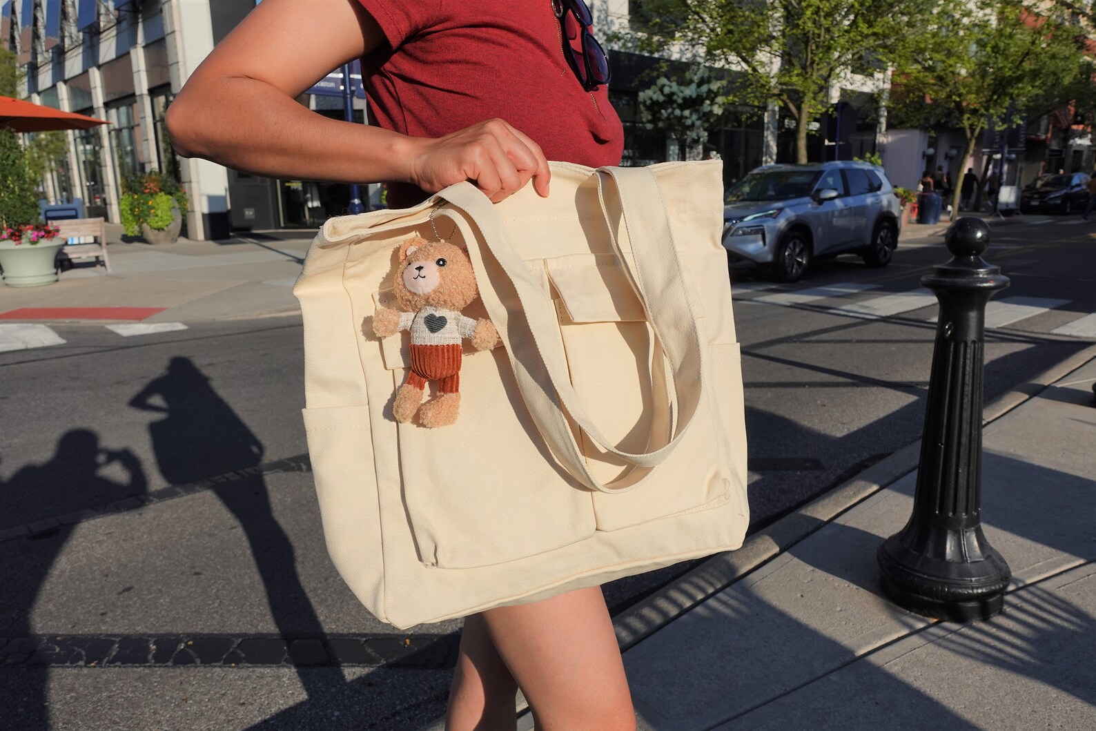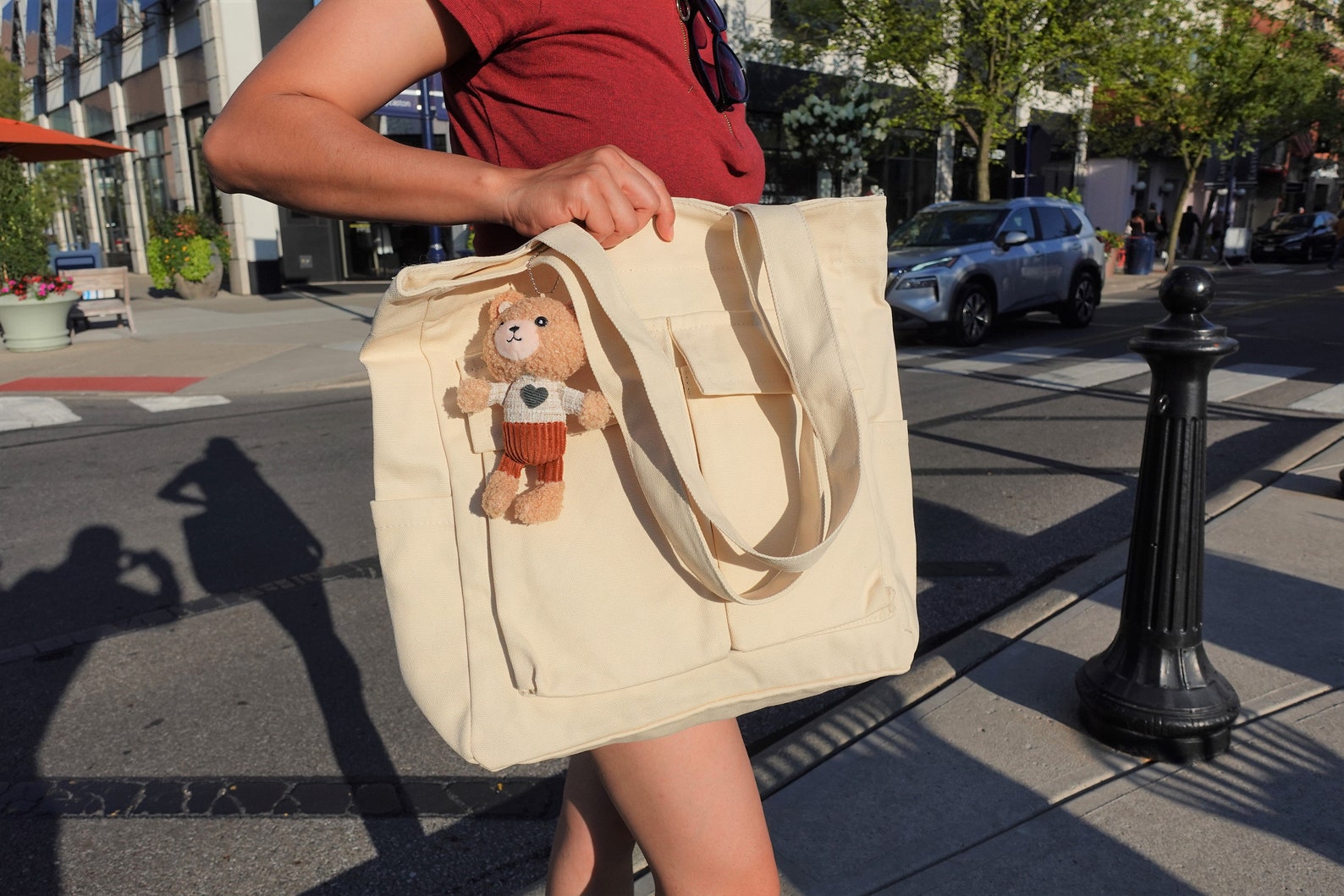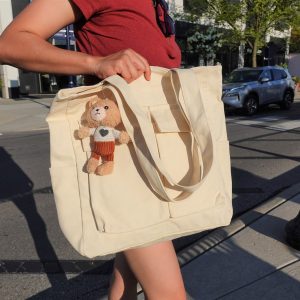 Very modern, cute and fits a lot items. The perfect sized canvas bag for all your bookish desires or small item with functional pockets