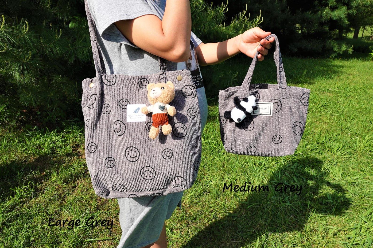 ☼The corduroy tote bag is the perfect size for a daily, hanging out, for school, college, travel, a day out with toddlers, Corduroy fabric is thick and soft great quality.