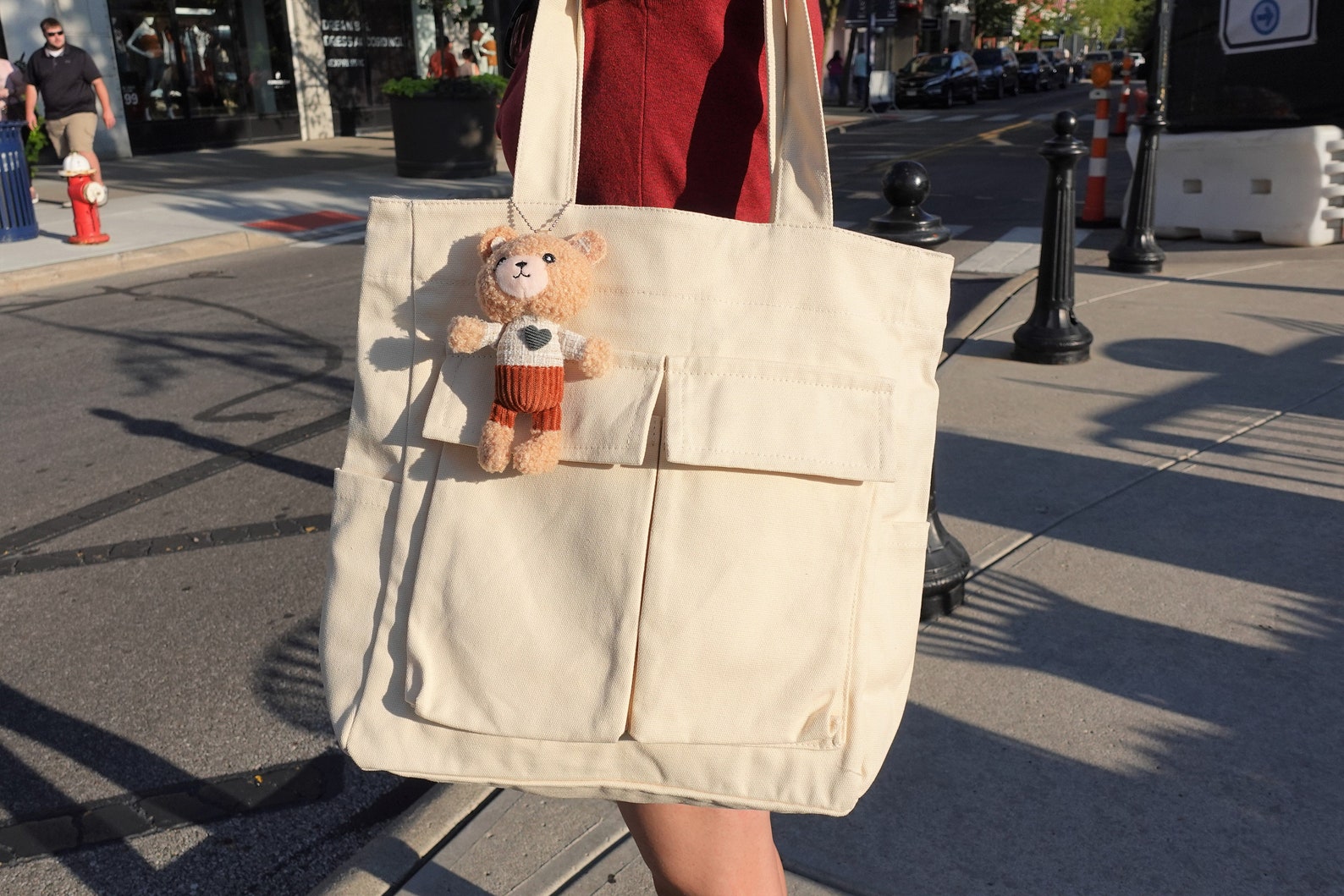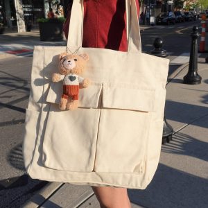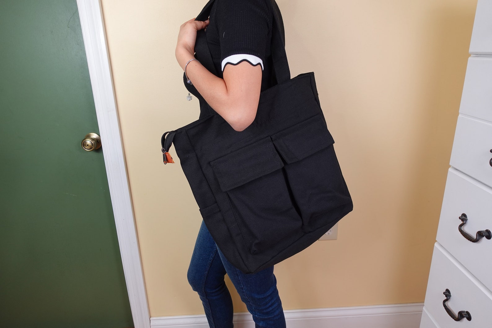 The Large Canvas Tote bag made of very sturdy and stiff canvas material. With Multiple Pockets, Very modern, cute and fits a lot items. The perfect sized canvas bag for all your bookish desires or small item with functional pockets