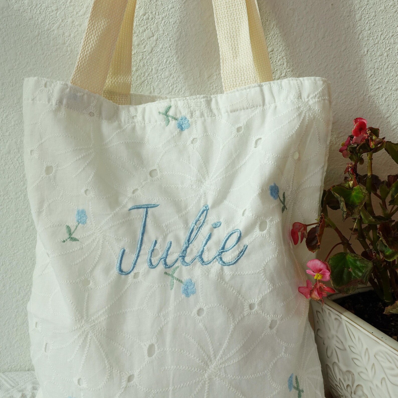 Add a touch of elegance and personalization to your everyday style with this handmade embroidered tote bag.