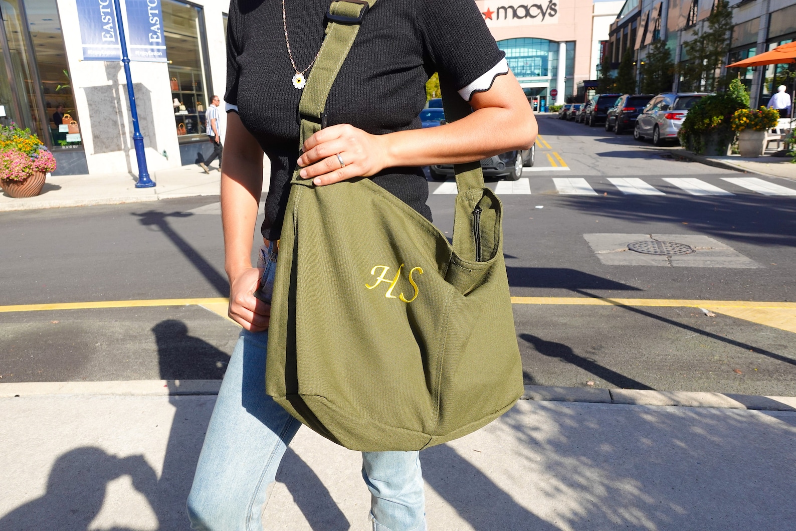 Embroidery Tote Cross body bags made of very sturdy and stiff canvas material. There is a small pocket inside the bag, adjustable straps. This Custom Totes Very modern, cute and fits a lot items. The perfect sized personalized gifts purse for all your bookish desires or small item with functional pockets, Gift for your Mama, Bestie, Bridesmaids, Bridal Gift bag, etc.