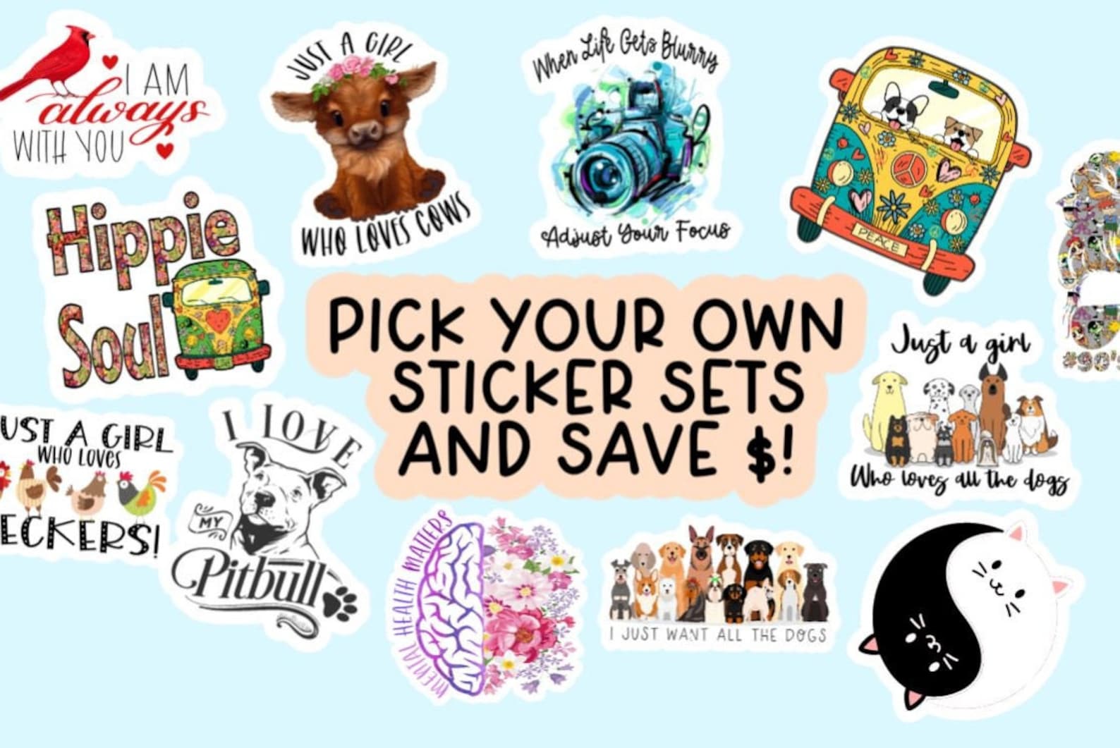 Pick any 3, 5, or 10 individual stickers from my entire shop for a discounted price! Please make sure to note your sticker choices in the personalization box when ordering. All stickers are 3 inches at their longest measurement.