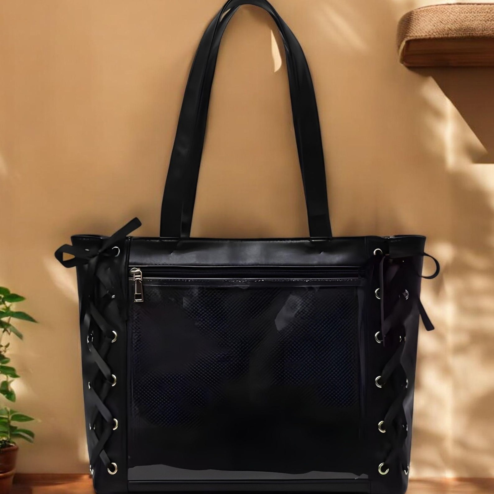Looking for the perfect mix of style and practicality? This Coquette-inspired Ita Bag is here to impress! Featuring charming ribbon details, lace-up sides, and a spacious transparent window to showcase your favorite anime pins, badges, or trinkets, this bag is both functional and aesthetic.