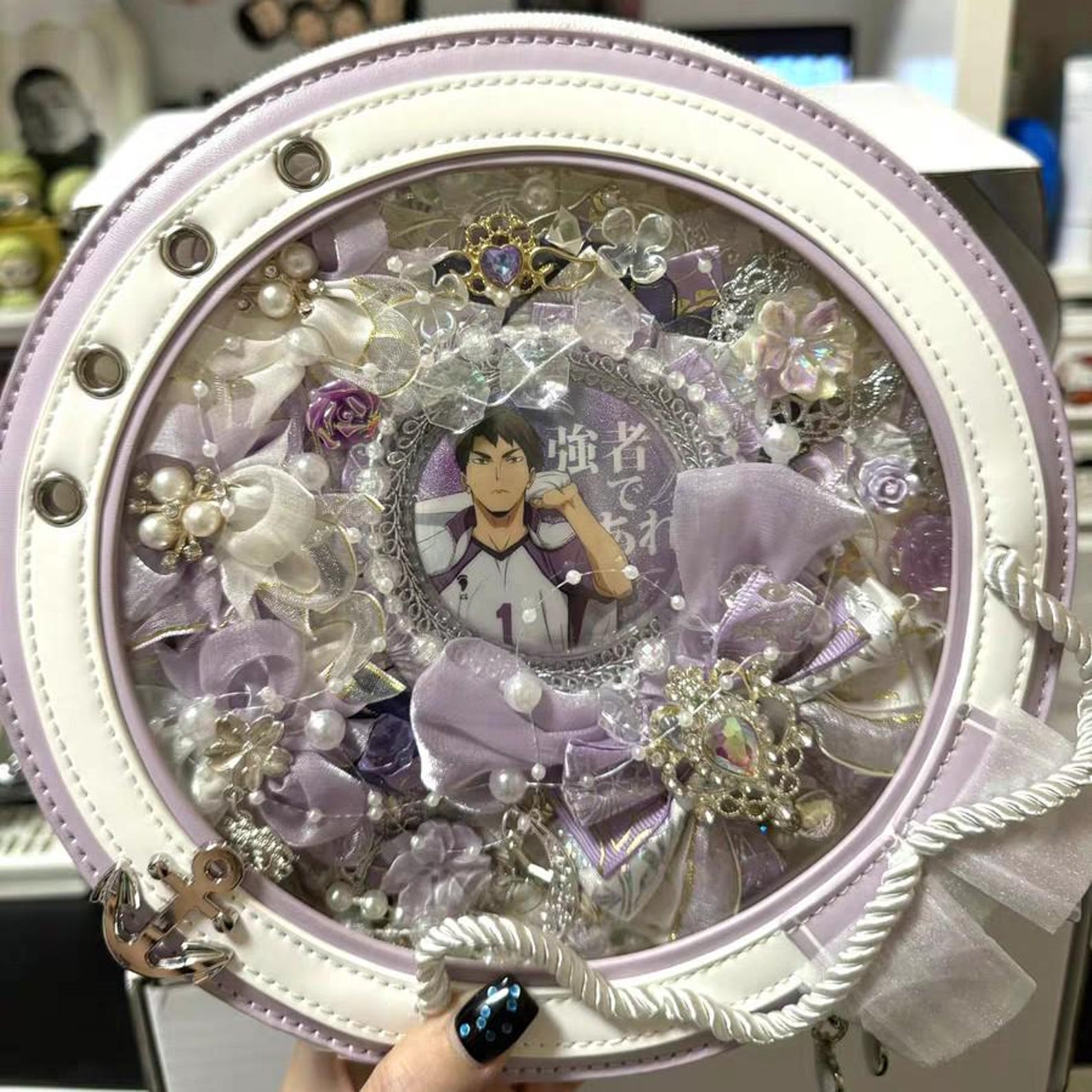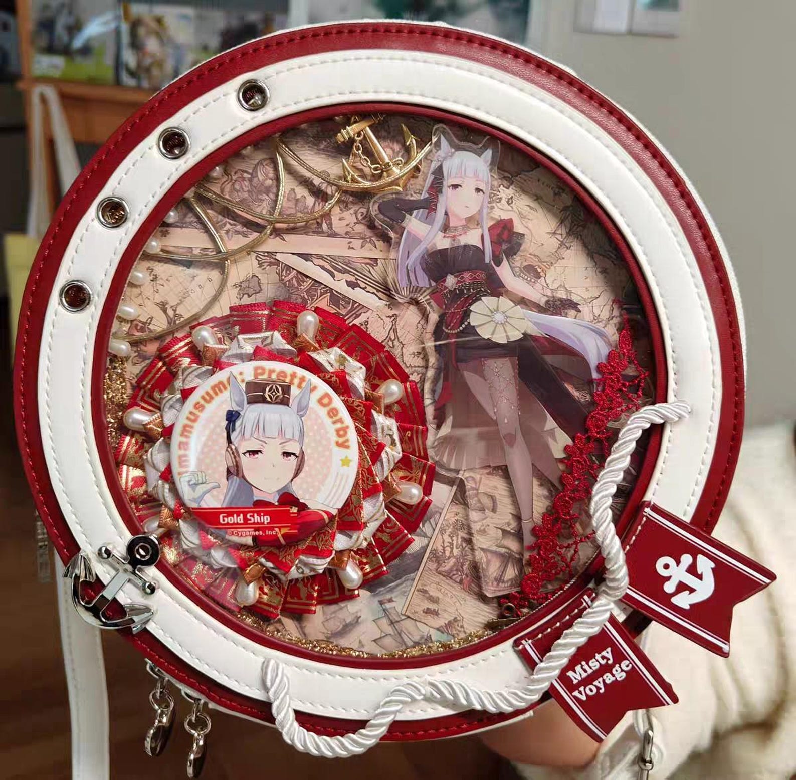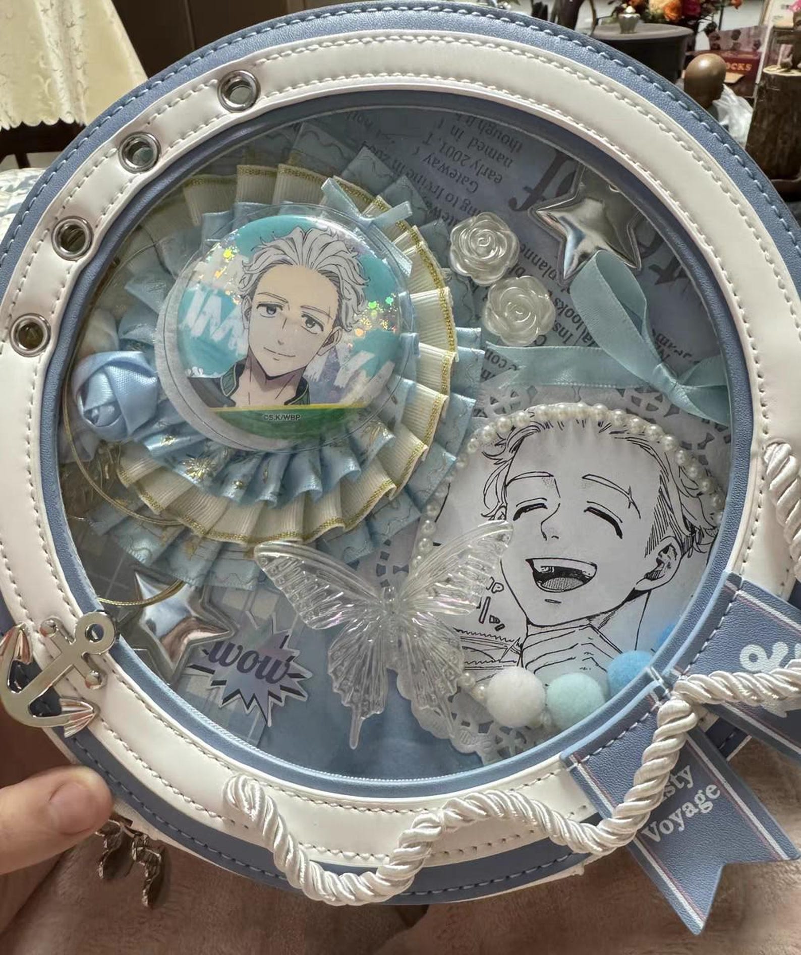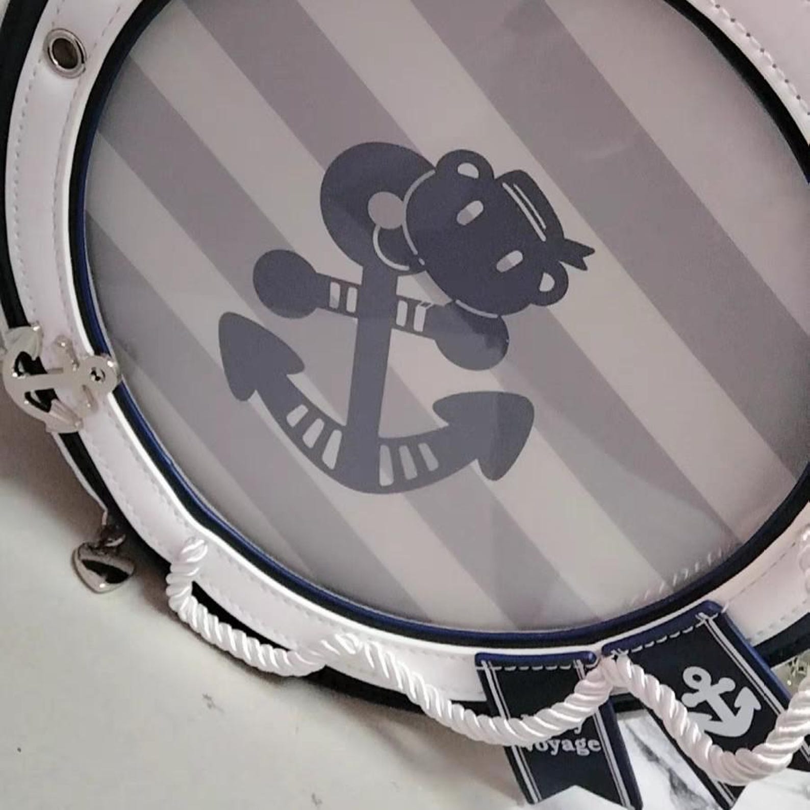 ⚓ Nautical-Inspired Ita Bag – Elegant sailor-style round ita bag with anchor charm, rope trim, and soft blue-white color scheme, perfect for ocean-themed or anime collections.