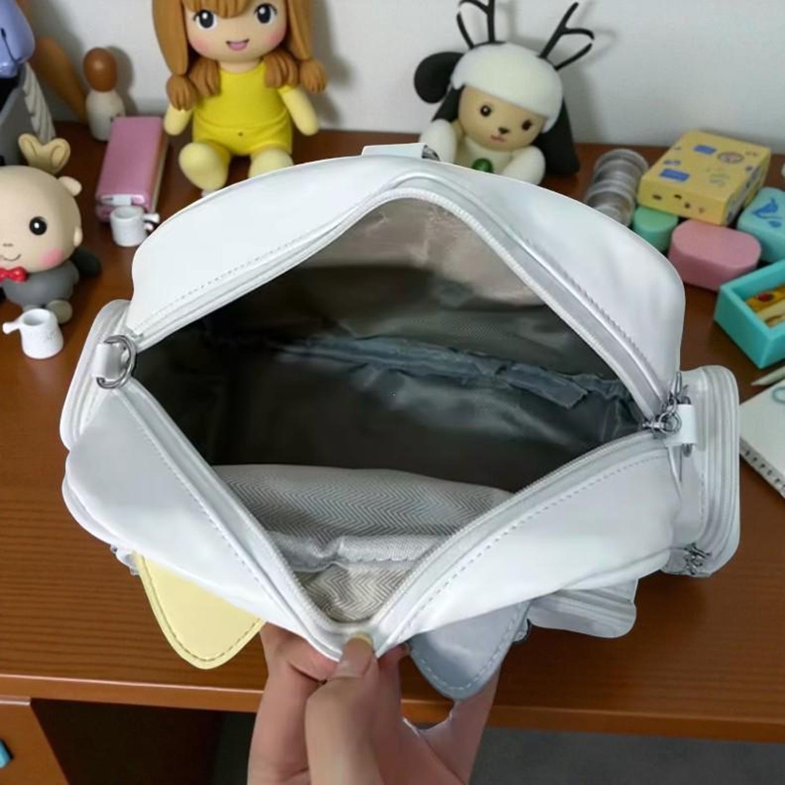 Conçu pour les amateurs d'esthétique japonaise et coréenne, cet adorable sac en cuir PU noir est orné d'oreilles de chat, d'une étoile et d'une poche frontale transparente pour mettre en valeur vos épingles, porte-clés ou breloques en peluche préférée. Parfait pour l'école, les voyages, les conventions ou simplement pour ajouter une jolie touche à votre tenue !