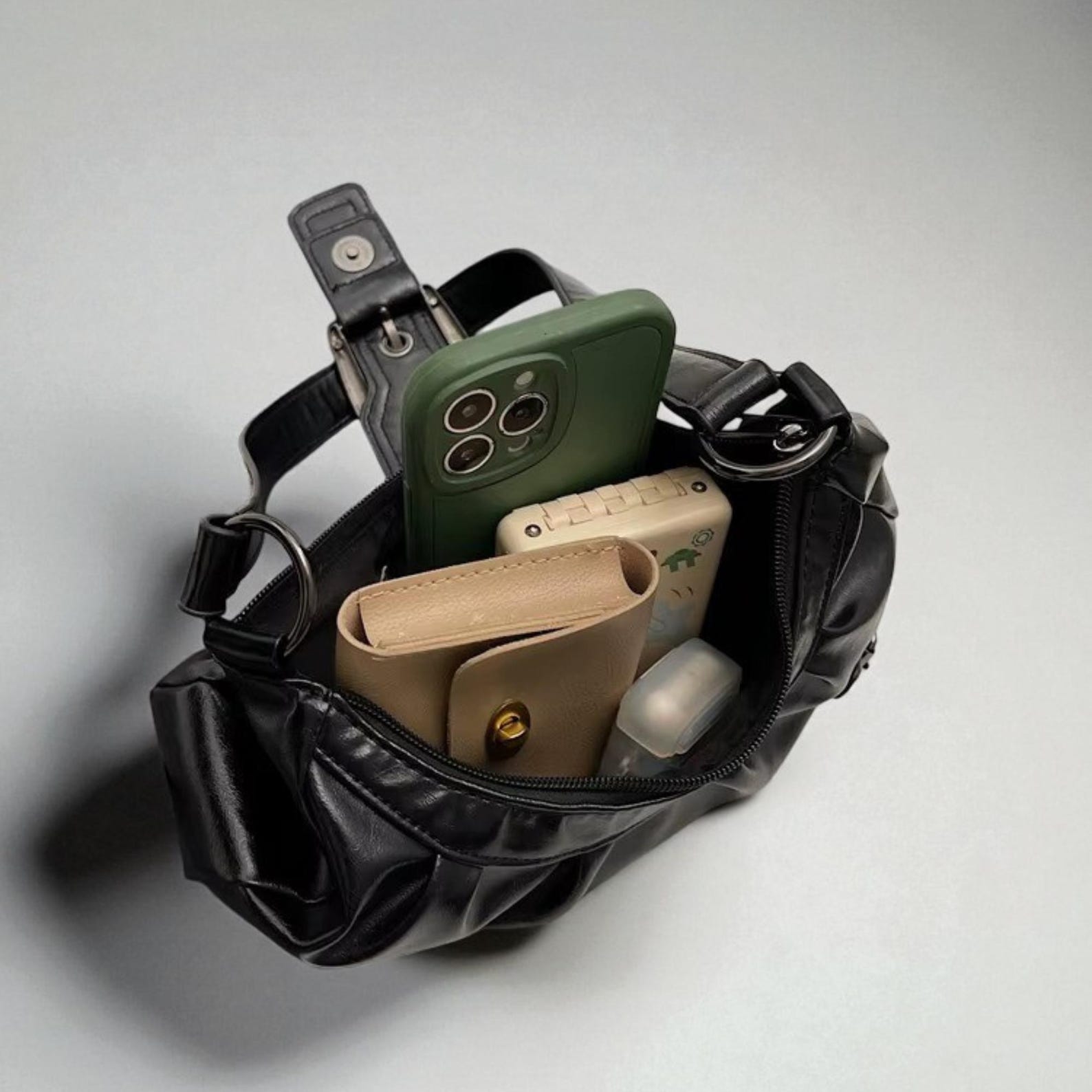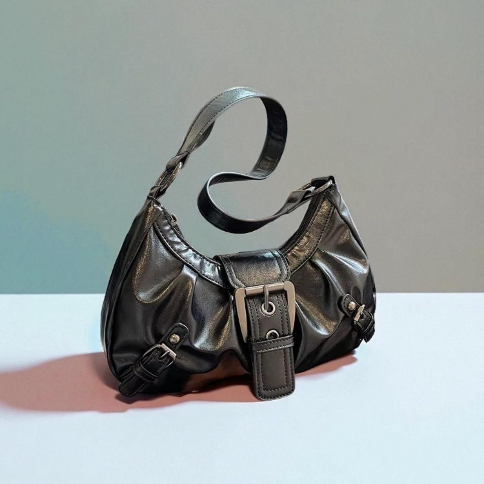 💫Its glossy texture, chunky buckle, and soft pleated shape create the ultimate throwback look while offering dependable structure for daily use. The adjustable strap and compact size make it perfect for on-the-go styling.
