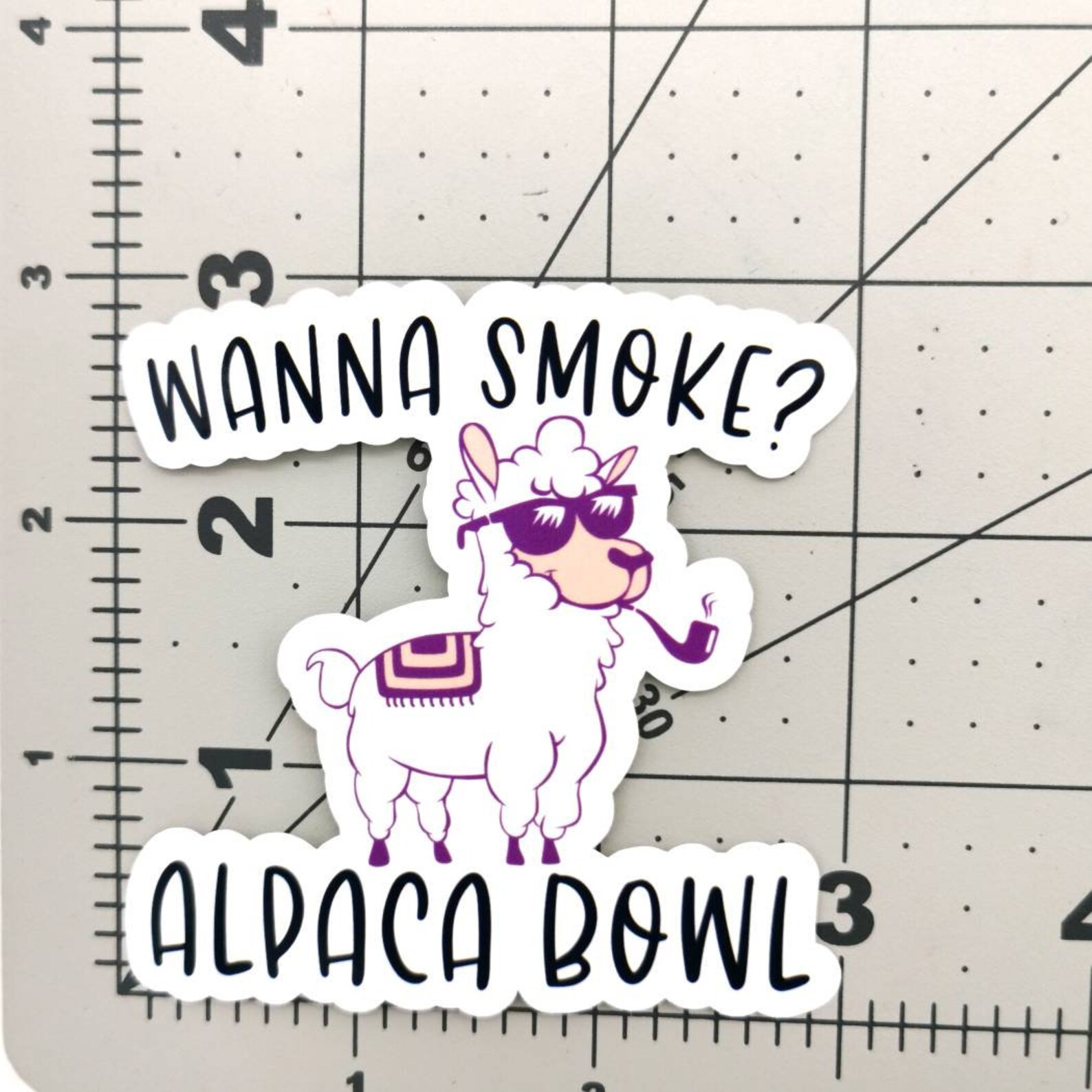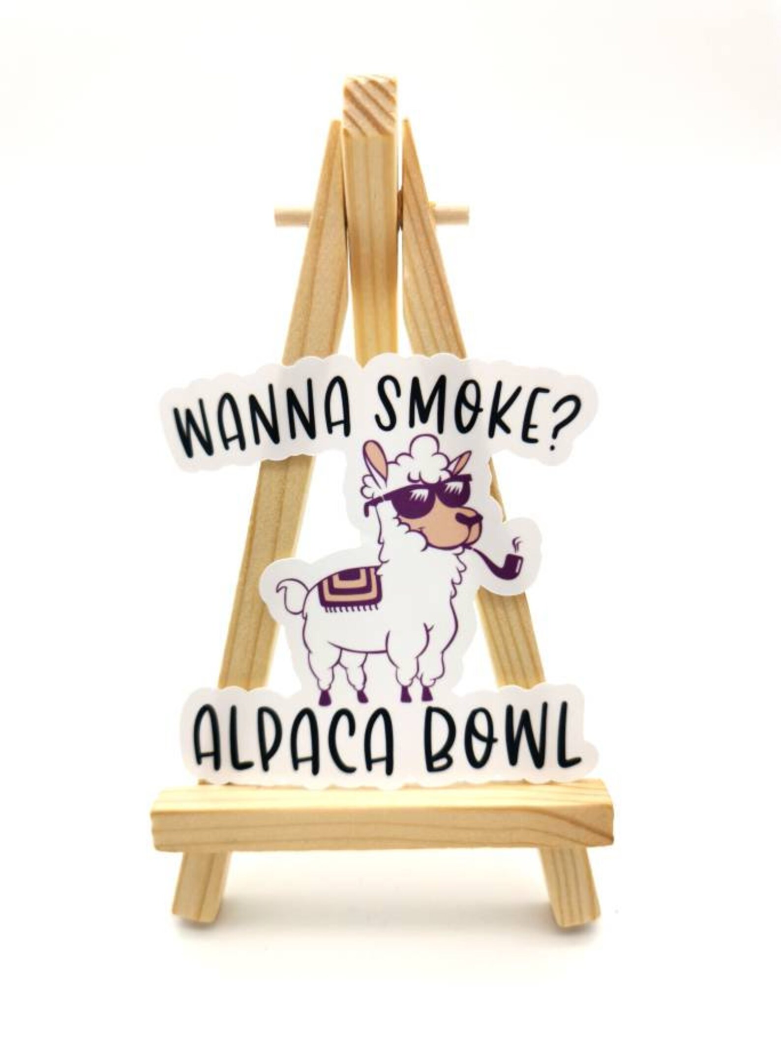 3" Wanna Smoke? Alpaca Bowl Funny Novelty Smoking Sticker for Smokers Hydroflask, Car Decal, Water bottle, Car Bumper, Phone Case, Notebook