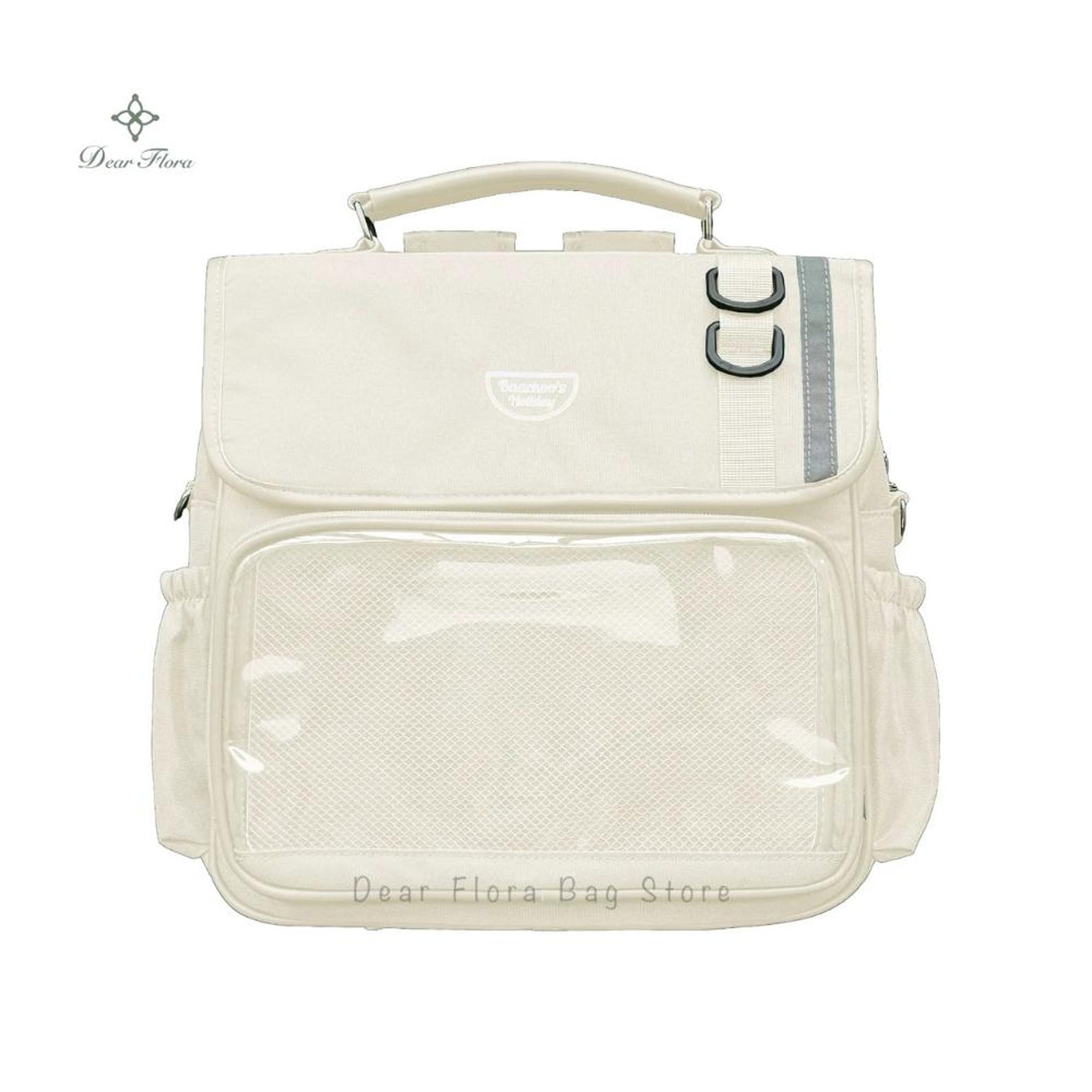 Show off your personality with this Women’s Fashion Ita Backpack, designed with a spacious transparent pocket to display charms, pins, keychains, photocards, dolls, and more! Made from durable Oxford cloth + PVC, this multifunctional bag can be worn as a backpack, shoulder bag, or crossbody, offering both versatility and style.