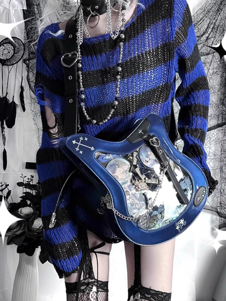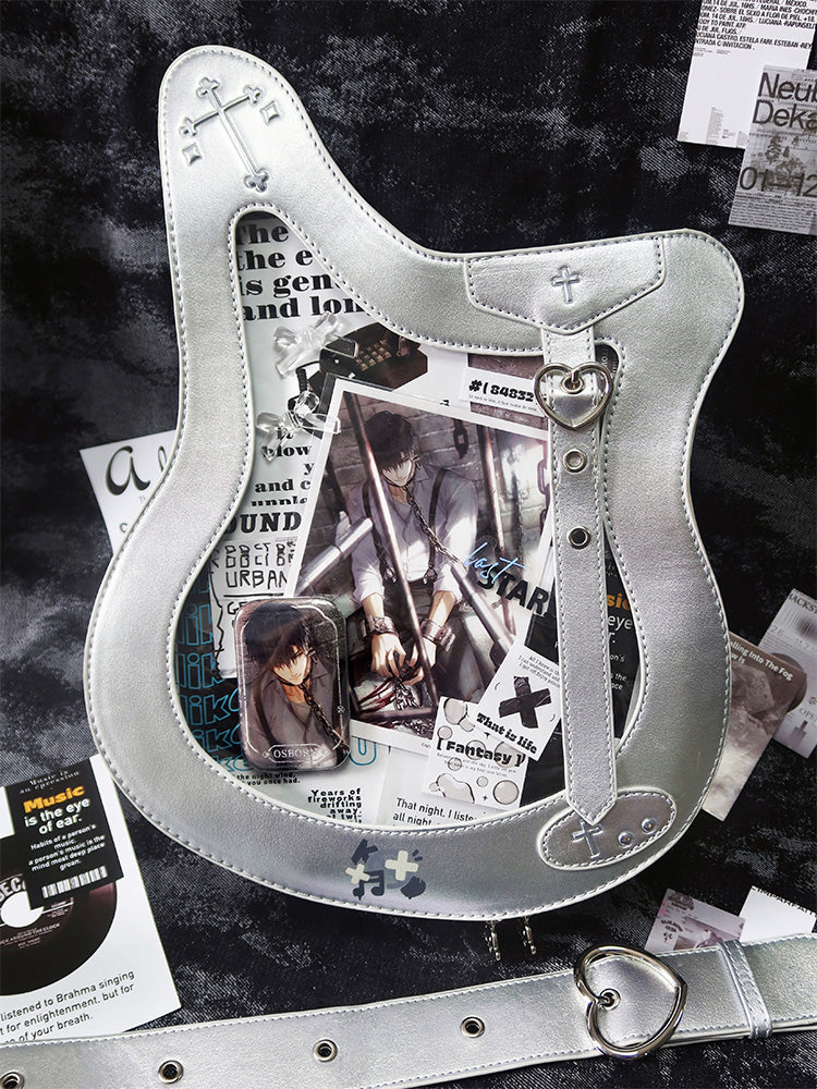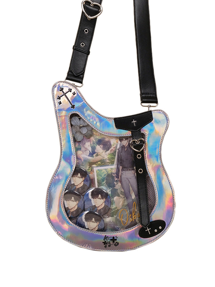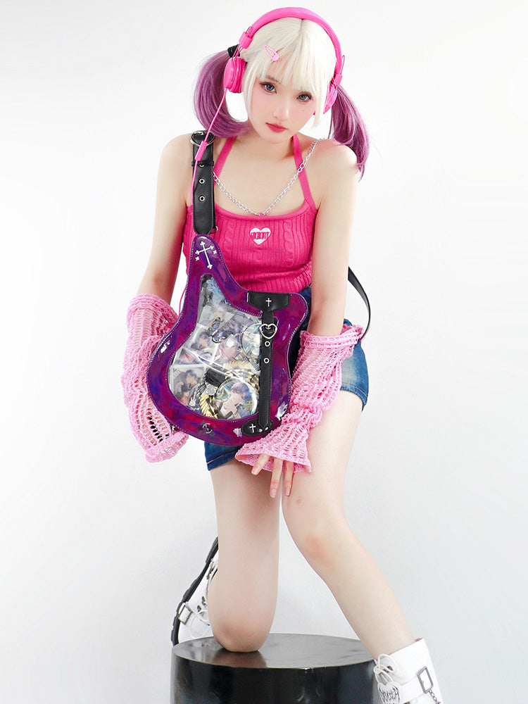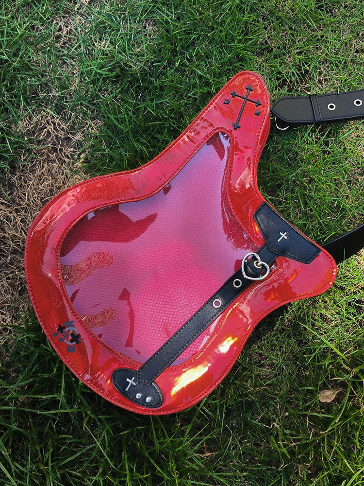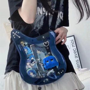 Y2K Guitar and Bass-Shaped Ita Bag with Pin Display Design