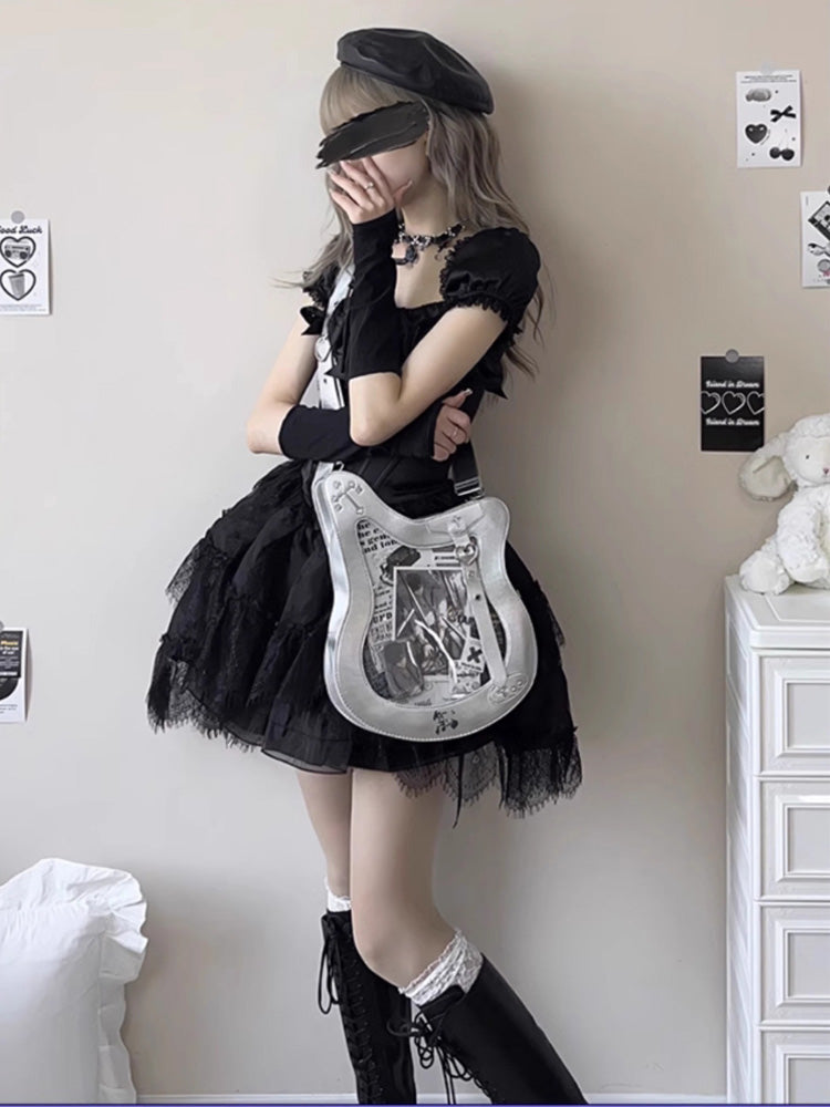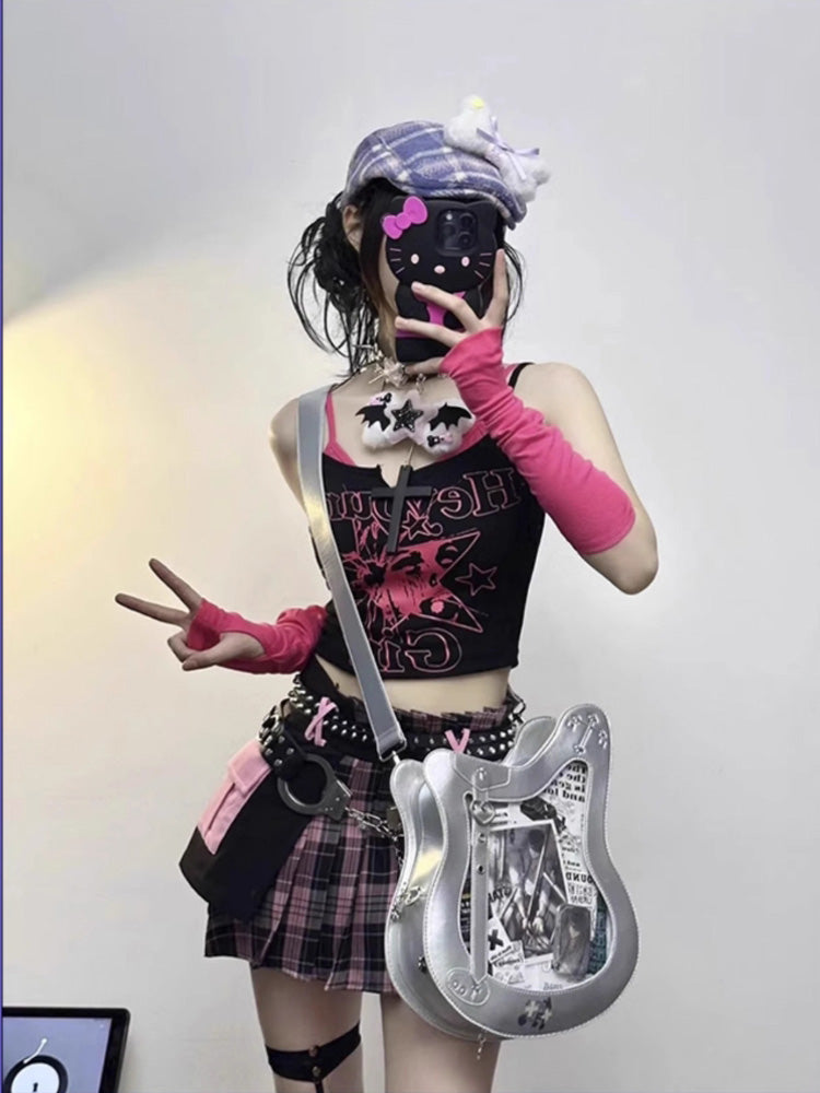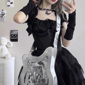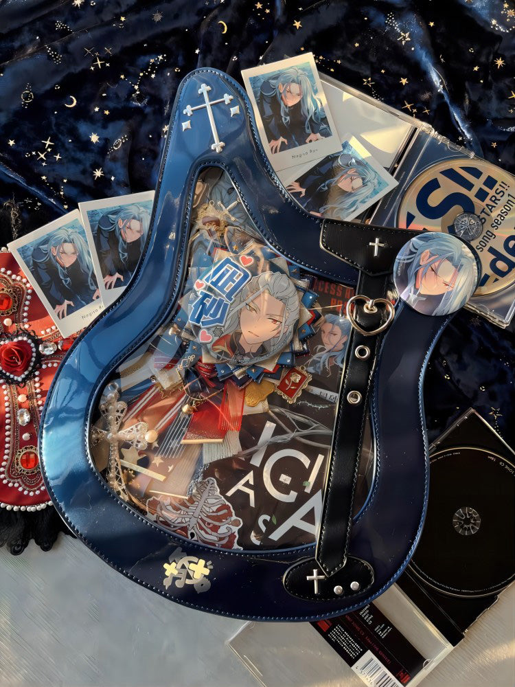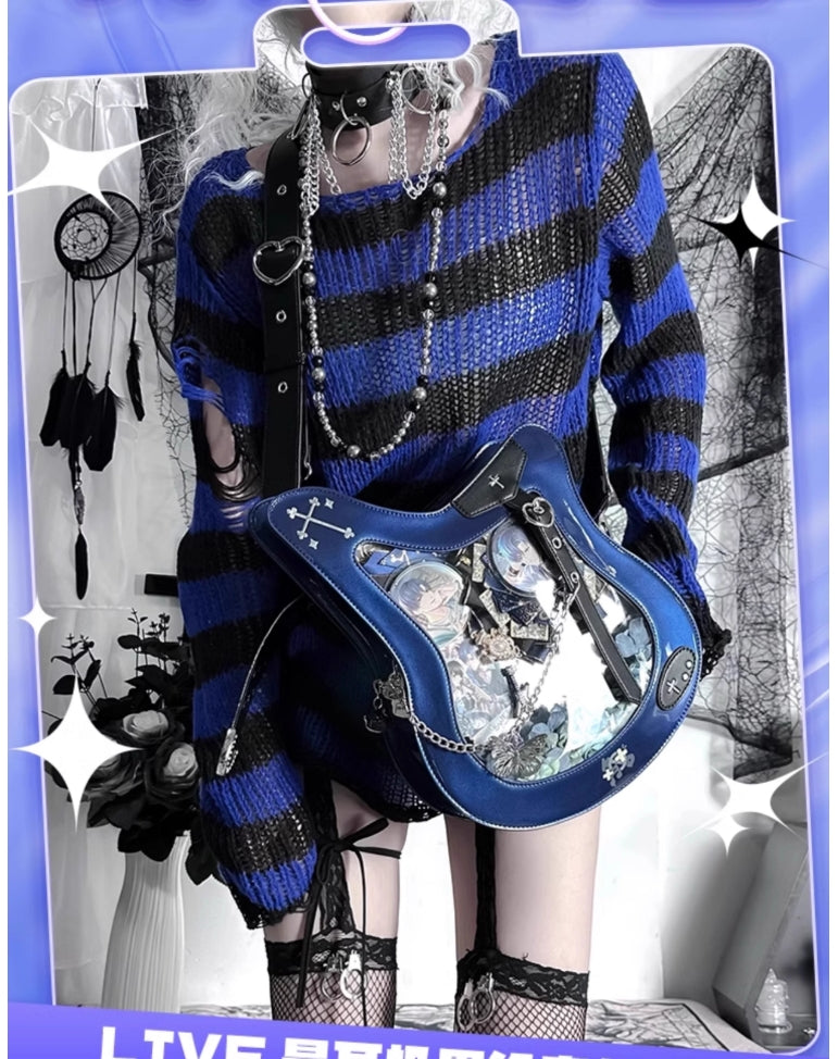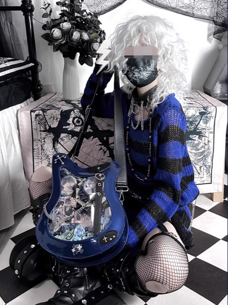 Y2K Guitar and Bass-Shaped Ita Bag with Pin Display Design