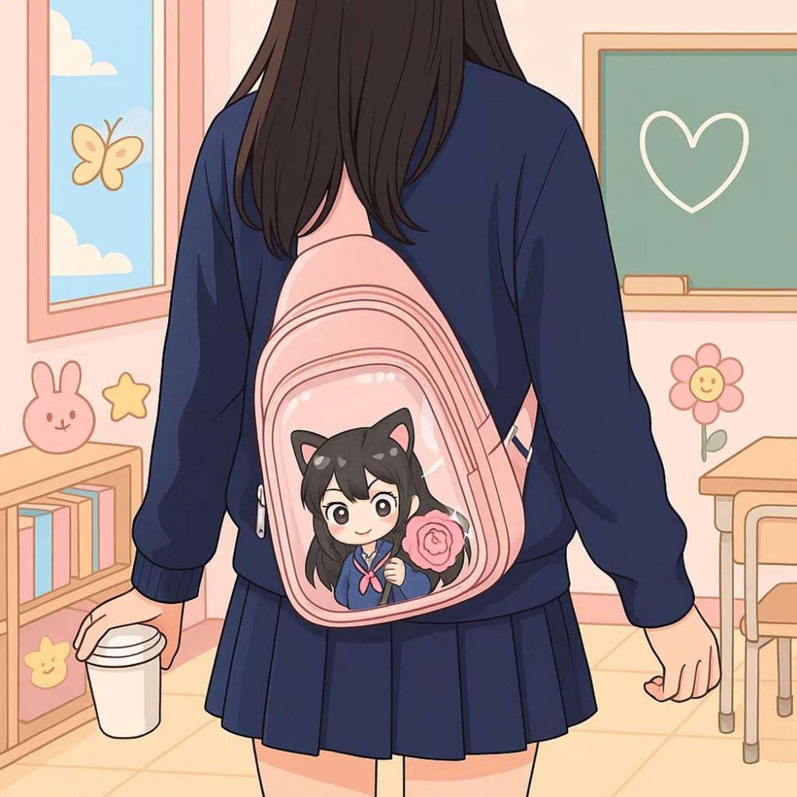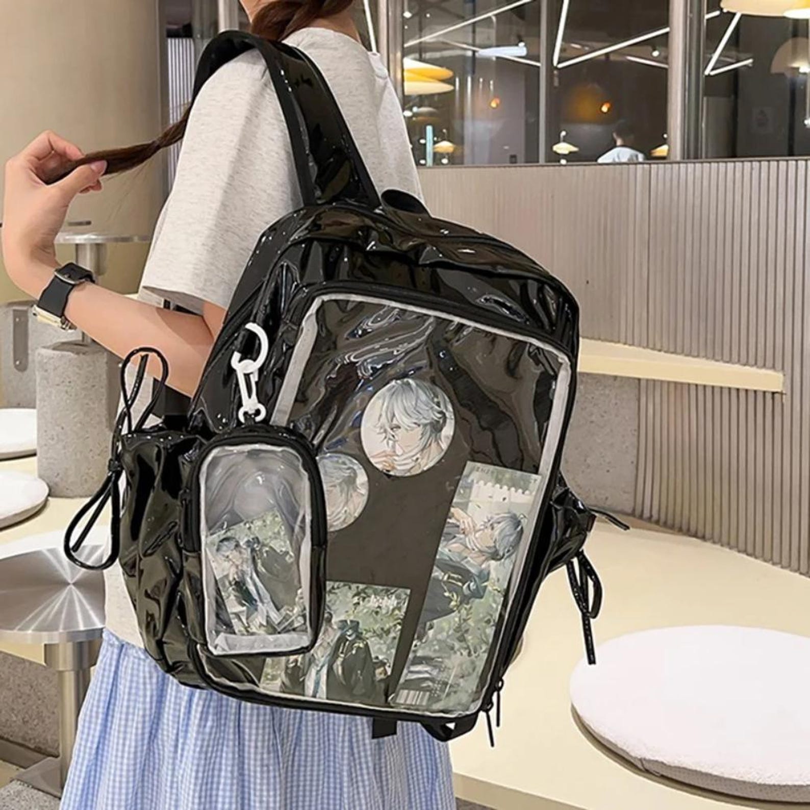 This Y2K Ita Backpack is designed for women and students who love anime-inspired fashion, kawaii style, and unique self-expression. With a large transparent display pocket, it’s perfect for showing off your pins, charms, photo cards, or anime badges, while carrying books, essentials, and more.