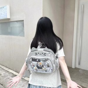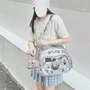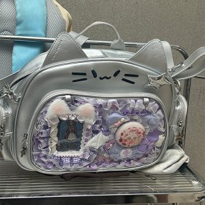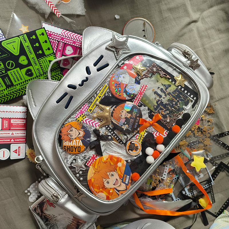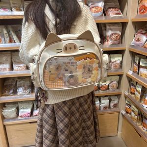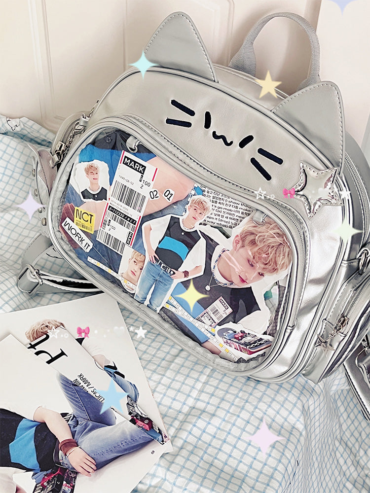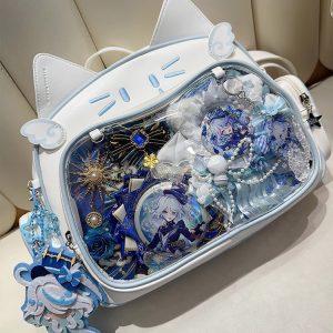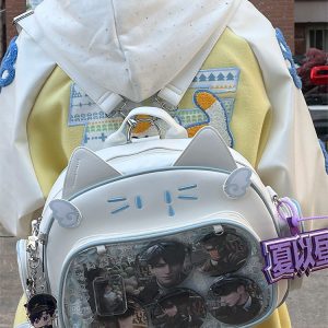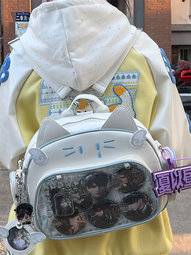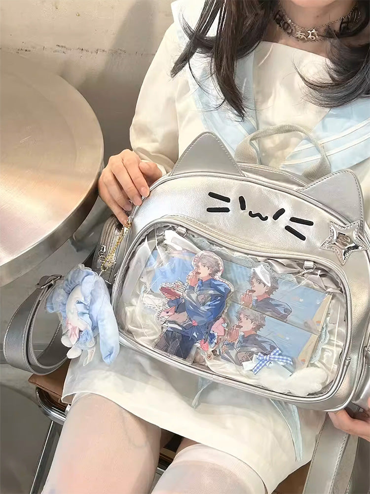 This cat-shaped ita bag is absolutely adorable! It can be worn as a shoulder bag, backpack, or carried by hand. The large capacity makes it perfect for daily use, and there’s a small side pocket that can hold dolls under 10 cm or small cards.