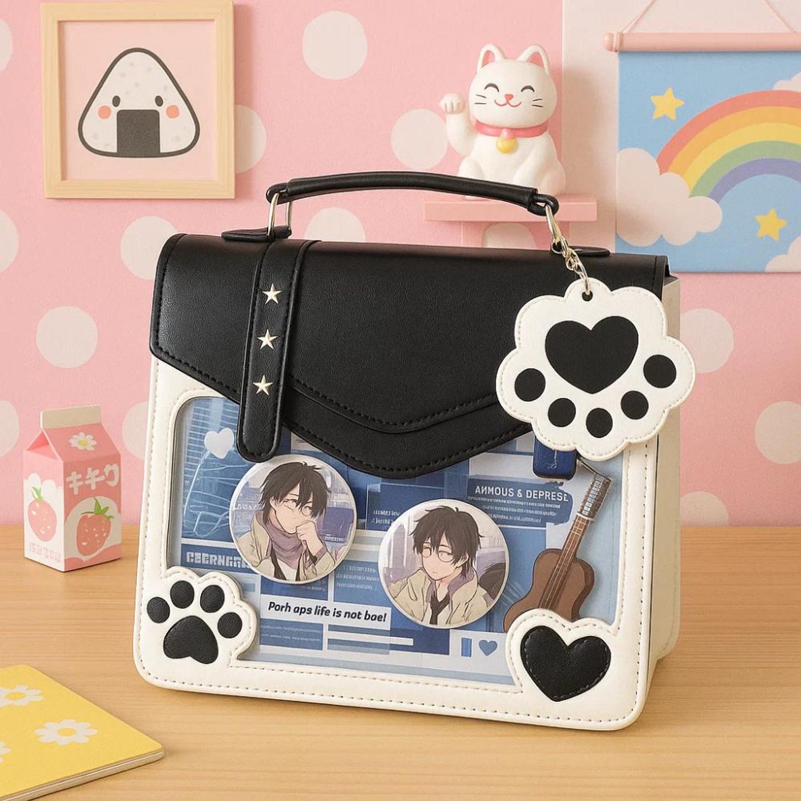 Sail into kawaii style with this Y2K Nautical Theme Ita Bag, a charming blend of cuteness and creativity. Designed with a round transparent display window, this bag is perfect for showing off your favorite pins, charms, and accessories — a must-have for anime lovers and fashion enthusiasts alike!
