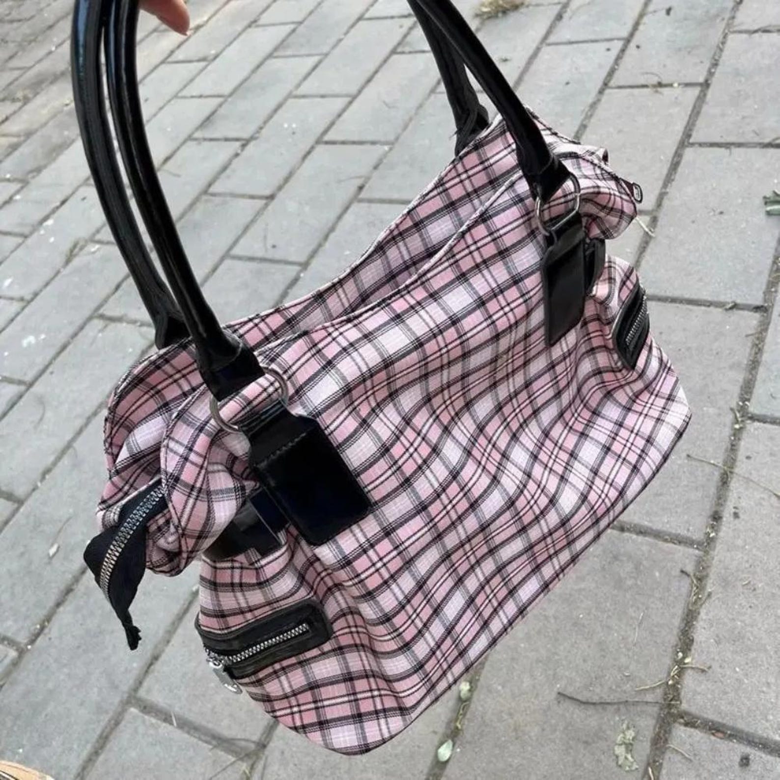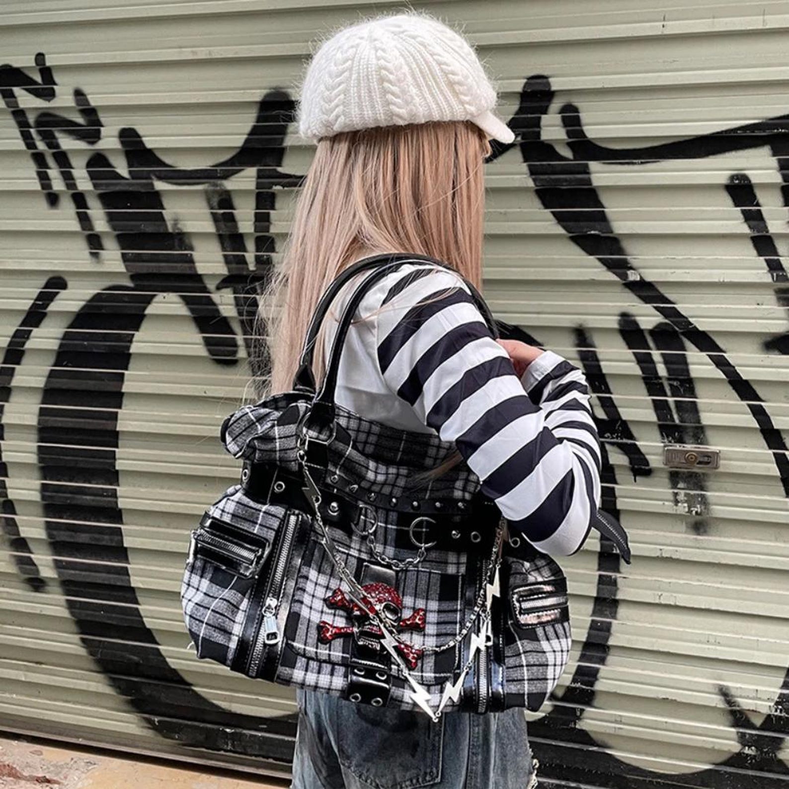 ✨ Whether you’re heading to school, shopping, or simply upgrading your outfit, this Plaid Y2K Tote with Punk Chains is the perfect blend of fashion and function. ✨